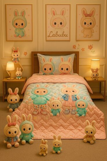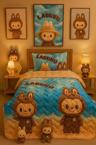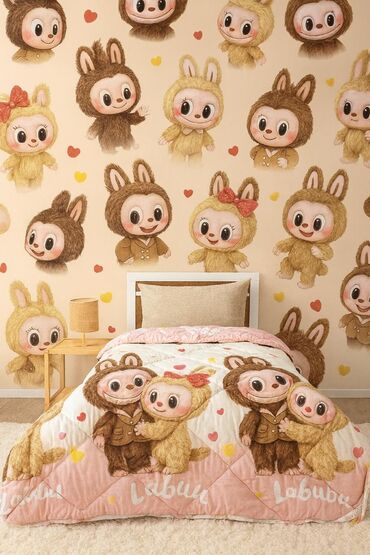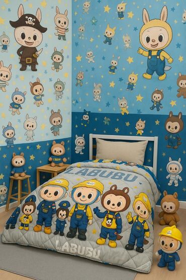 - Dizayn: Sevimli LABUBU personajları ilə rəngarəng naxışlar. Çəhrayı, mavi və pastel tonlarda müxtəlif kompozisiyalar; ulduzlar, ürəklər və çiçək motivləri. Uşaqların otağına şən və rahat atmosfer qatır.
