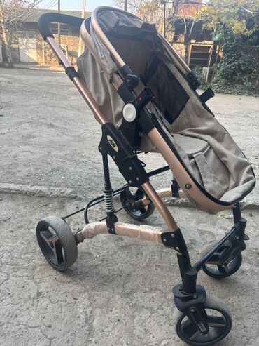 - Təkərlər: iri arxa və fırlanan ön təkərlər; ön təkərlərdə fiksator, arxada ayaq əyləci.