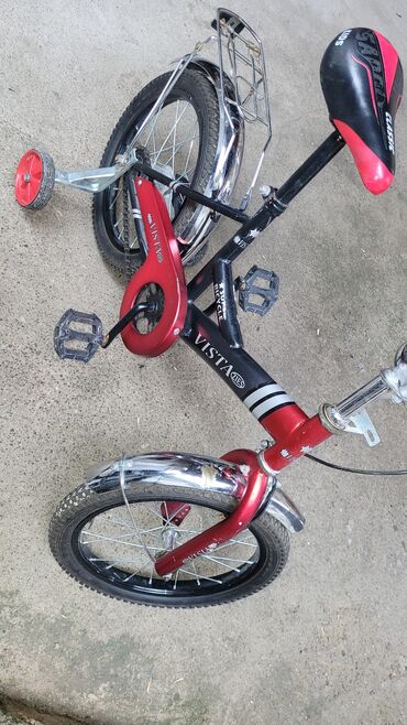 Uşaq velosipedi – VISTA (klassik model) - Ölçüsü: 16" - Rəng: qırmızı/qara, xrom detal və qanadlı - Çərçivə: polad, möhkəm konstruksiya Yaxşı vəziyyətdədir.Giriş•Qeydiyyat