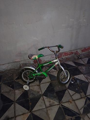 2) Yaşıl uşaq velosipedi (üzərində “Салют/Спорт” yazıları)