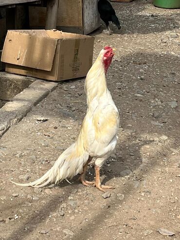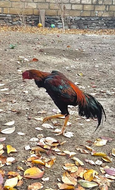 - Şəkillərdə müxtəlif rənglərdə (tünd qırmızı-qara, ağ-krem və qara-yaşıl parıltılı) uzun ayaqlı, incə bədənli xoruzlar göstərilir.