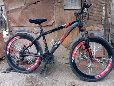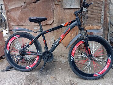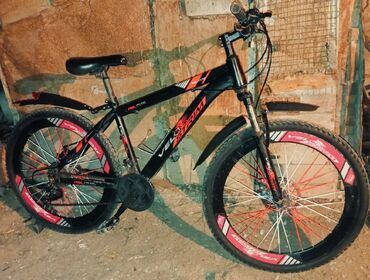 - Təkərlər: 26" dişli şinlər, dekorativ qırmızı‑ağ spok örtükləri
