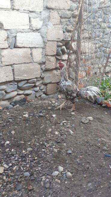 Məhsul: Xoruz - Növ: ev şəraitində saxlanılan xoruz - Rəng: ağ-qəhvəyi-mələk qarışıq lələklər, qara quyruq ucları - Xüsusiyyətlər: həyətdə sərbəst gəzən, toyuq sürüsünə uyğun; ayıq-sayıq, fəal - Ş...
