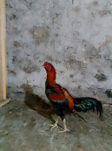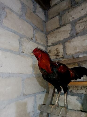 Cinsi: Qırmızı-boz rəng çalarlarında döyüş tipli xoruz Xüsusiyyətlər: - Uzun, möhkəm bədən quruluşu, hündür ayaqlar - Geniş sinə, güclü boyun, sərt lələk quruluşu - Canlı qırmızı ibik və sa...