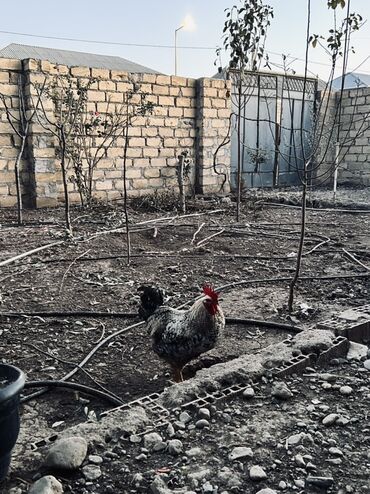 Salfəli rəngli (qara-ağ-boz naxışlı) iki ədəd xoruz. - Cins: yerli döyüşkən-tovuq qarışıq tip (yüngül bədənli, hündür ayaqlı). - Yaş: yetkin. - Xarakteristika: güclü dimdik və daraq, canlı və çevik...