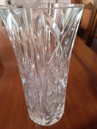 Çox gözəl böyük xrustal gül qabı. Hündürlüyü 30sm. Ağırdı, təzədi,işlənməyib pul lazımdı deyə satılır 100m.