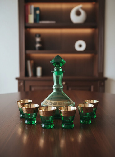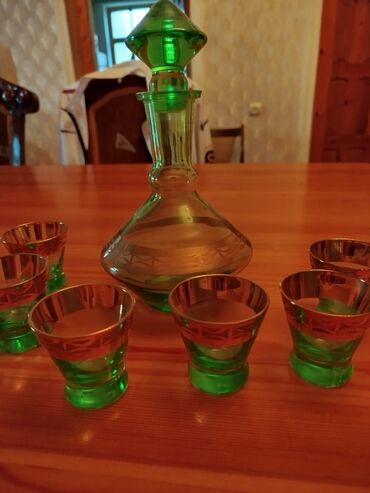 Pulsuz çatdırılmaYaşıl şüşədən ibarət içki dəsti..Sovetindi hecbir defekti yoxdu tezedi. islenmiyib..Gencededi..elaqe ucun bura yazin.