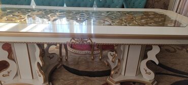Zal və qonaq otaqları üçün nümayişkaranə görünüş, şüşə səth sayəsində təmizlənməsi rahatdır. Ağ-qızılı tonlar mavi, krem və taxta mebellərlə asan uyğunlaşır.