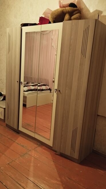 1700 manata alınıb.Geniş və funksional dolab, üç hissədən ibarət olmaqla geyim və əşyalarınızı səliqəli şəkildə saxlamaq üçün uyğundur. Mərkəzi hissədəki iki güzgülü qapı istifadə rahatlığı təmin edir və otağa vizual olaraq genişlik verir. Hər iki kənarda yerləşən yan qapılar əlavə saxlama sahəsi təklif edir. Dolabın rəngi müxtəlif interyerlərə asanlıqla uyğun gəlir. Yataq otağı və ya geyim otağı üçün praktik və estetik bir seçimdir.