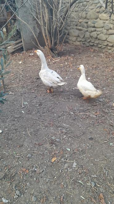 - Ağ rəngə yaxın lələkləri, narıncı dimdik və pəncələri olan 2 ədəd yerli ördək.