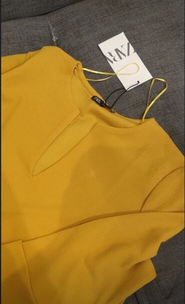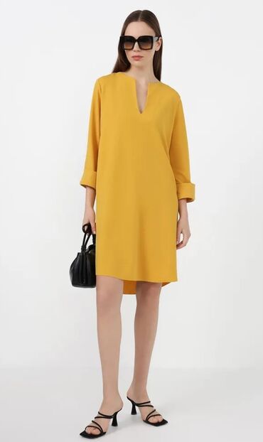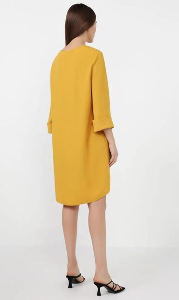 ZARA qadın paltarı – sarı/mustard rəngdə, rahat “shift” kəsim.
