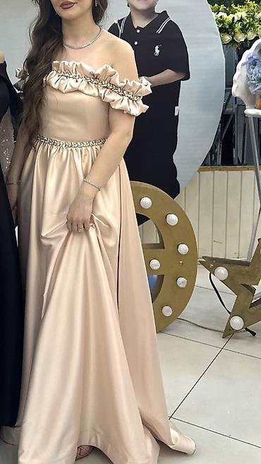 *Model*: Çiyinləri açıq, sinə və bel hissə qaşlı, uzun ətəkli