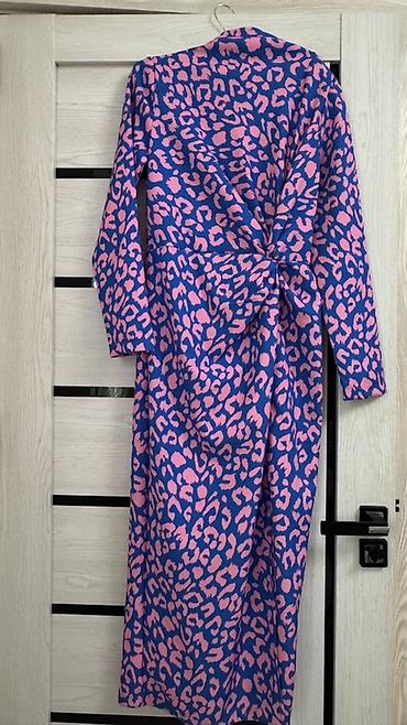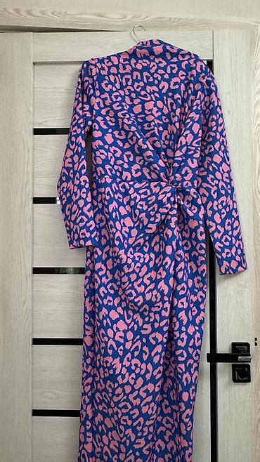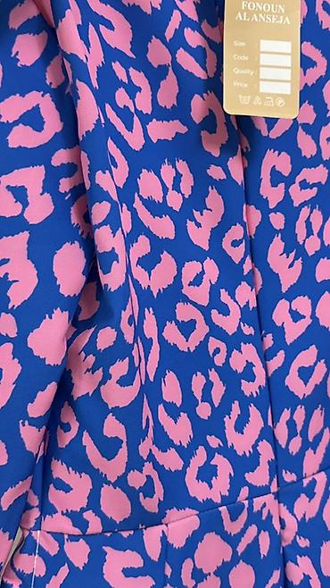 Zərif qadın paltarı – tünd göy uzun model, üzərində leopard naxışlı şifon kapelyur. 48 ölçü Xüsusiyyətlər: - İkiqat görünüş: əsas hissə düz, axıcı tünd göy parça; üstündə nazik, şəffaf şifondan le...