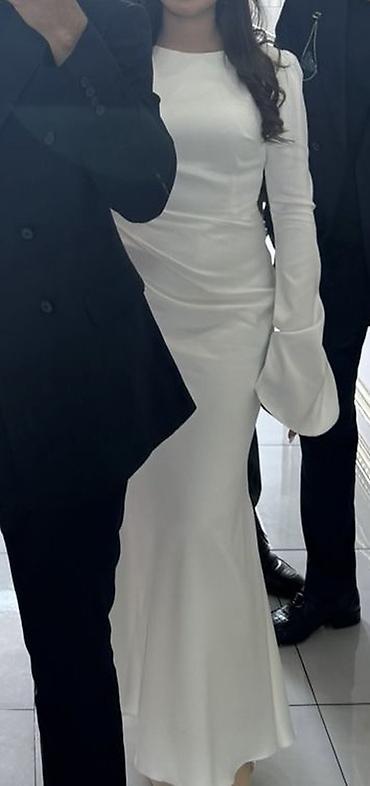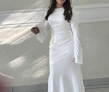 Ağ rəngli, minimal dizayna malik qadın gecə/ziyafət paltarı. 1cə dəfə geyinilib özəl zövqə uyğun tikdirilib 300 manata başa gəlib dərzi, parça aksesuarları ölçüsünü açdırmaq olur dərzi parçanı kəs...