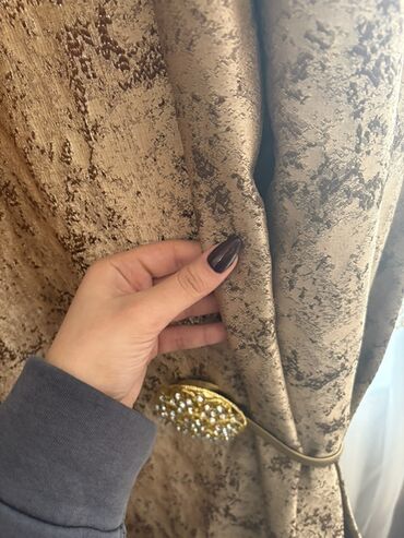 - Dizayn: pəncərəni tam örtən uzunluq, üst karnizə pərdə lentilə büzmə; qızılı dekorlu maqnit tutacaq (aksesuar) daxildir