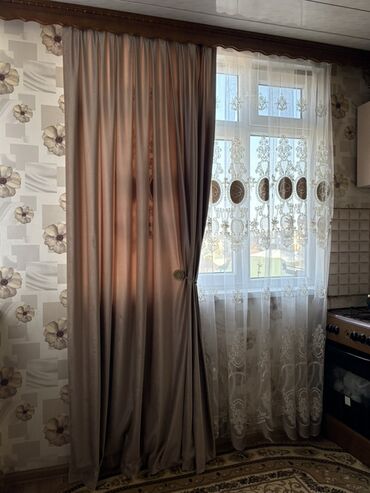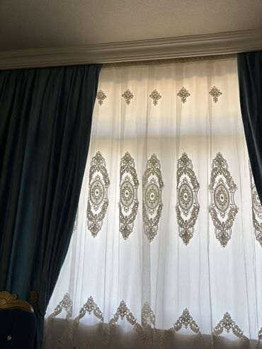 - Komplekt: qalın dekorativ pərdə + zərif naxışlı tül