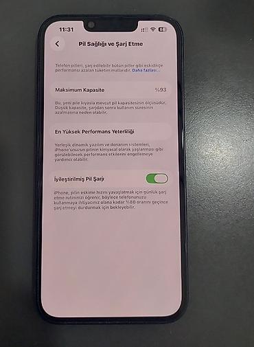 - Batareya sağlamlığı: 93% (şəkildə göstərilib), Optimized Battery Charging aktiv