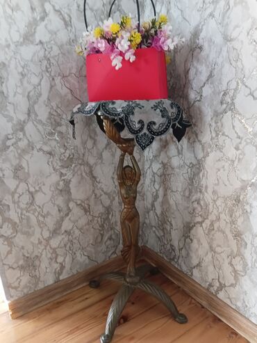 3) Dekorativ güldan altlıqlı metal/polirezindən hazırlanmış heykəlvari stol dayağı