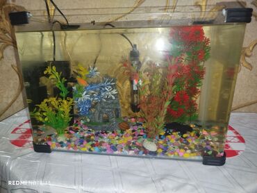 10 litrliy akvarium, dib örtüyü, bitgi dekor ve 5 eded rengli baliğ 25azn Akvarium baliglarinin satiwi 🐬Ağ şəffav danio ve glofishler 0.40azn 🦈 Danio baligi olcu 2 sm+,reng qirmizi,benovwe,sari,ya...