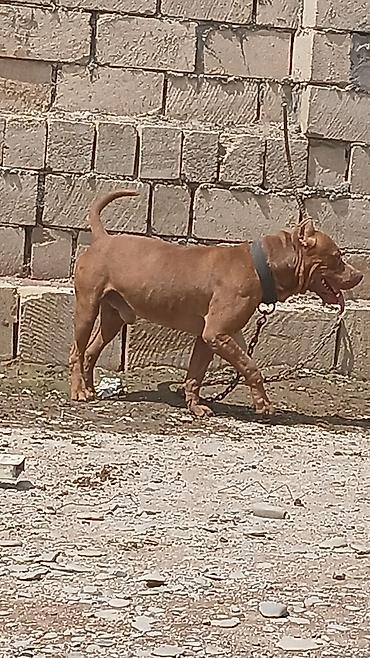 Amerikan Pitbull tipli, qəhvəyi rəngli erkək it. Xüsusiyyətlər: - Qısa, parlaq tük örtüyü, tünd qəhvəyi/bakır rəng - Güclü bədən quruluşu, enli döş qəfəsi və əzələli ayaqlar - Qısa quyruq, yarı-di...