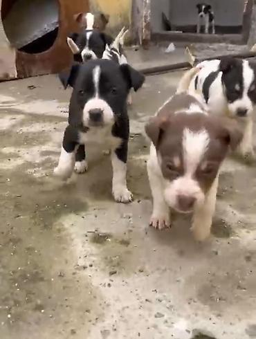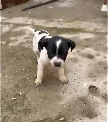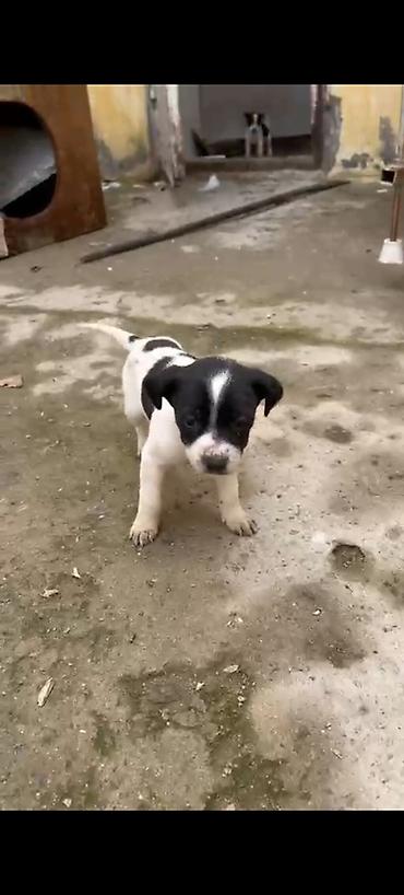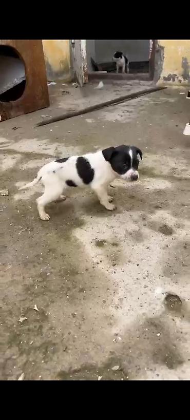 Ağ-qara ləkəli balaca it balaları - Cins: qarışıq - Rəng: əsasən ağ üzərində boz/qara ləkələr - Say: bir neçə balaca (şəkildə görünür) - Xüsusiyyətlər: aktiv, oyunbaz, sosial; açıq məkanda böyüyüb...