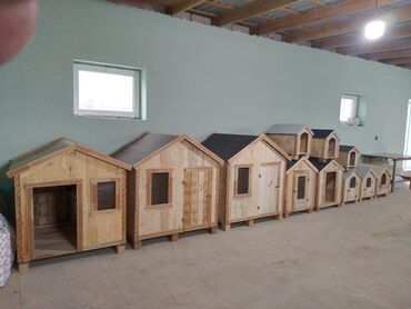 Taxta it evi - Material: təbii ağacdan yığılma, iç və çöl səthləri eyni taxta üzləmə ilə tamamlanıb - Dizayn: klassik uclu damlı kottec üslubu; ön fasadda oyma it başı dekor paneli - Dam örtüyü: m...
