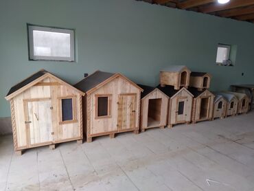 Taxta it evi - Material: təbii ağac (taxta panellər), möhkəm karkas. - Dam: ikitərəfli maili konstruksiya, şifer tipli/bitum örtüklə hava-su keçirməz qoruma. - Dizayn: klassik “evcik” forması;...