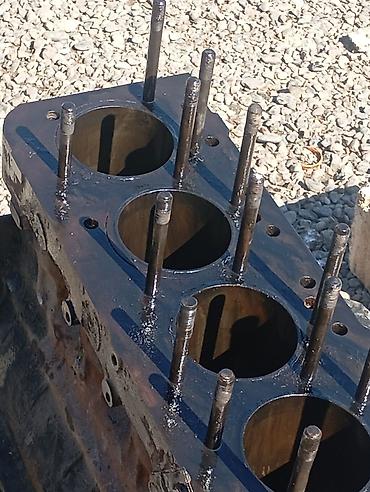 - Sıralı 6 silindrli mühərrik bloku, quyular və başlıq bərkidici şpilkaları üzərindədir.