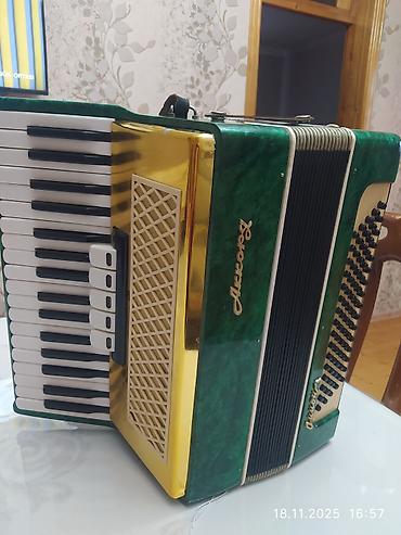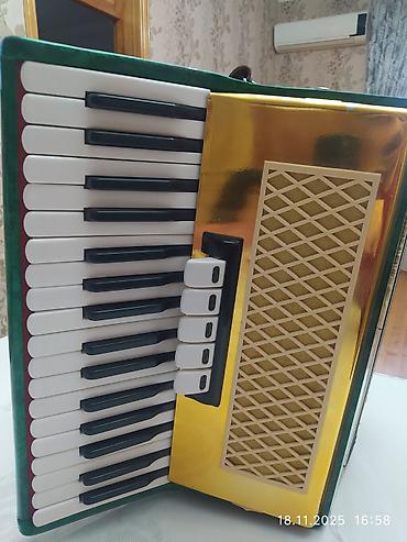 Akkordeon – klavişli və bas düyməli(20 ilin ) - Tip: Klavişli akkordeon, sağ tərəfdə pianino tipli klaviatura, sol tərəfdə bas düymələri - Korpus: Qəhvəyi/perlamutr effektli örtük - Məhfəz (mexa):...