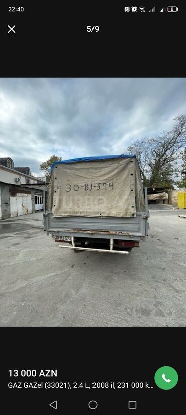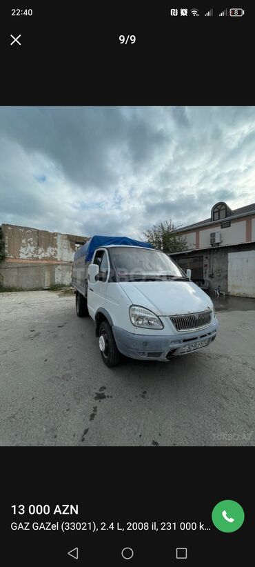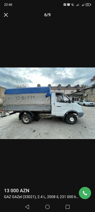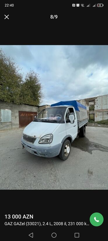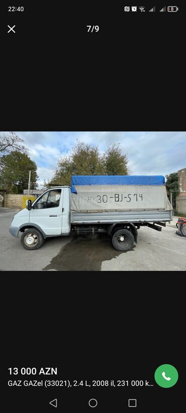 GAZ GAZel 33021 yük maşını - Buraxılış ili: 2008 - Mühərrik: 2.4 L benzin - Yürüş: 231 000 km (ekranda göstərilir) - Kuzov: tentli furqon/kuzovlu platforma, arxa tent və yan karkaslı örtük - Daşım...