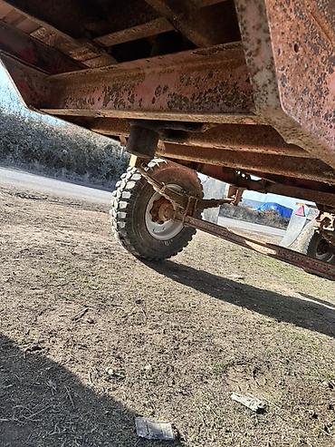 Təkərli qoşqu (traktor/pikap üçün) - Konstruksiya: möhkəm metal karkas, üstü açıq, 360° barmaqlıq yanlı. - Ölçü təxmini: orta ölçülü yük platforması; hündür yanlıq sayəsində həcmli yüklər üçün uyğ...