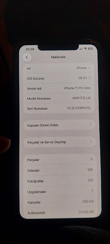 - Yaddaş: 256 GB (227,43 GB boş göstərilir)