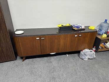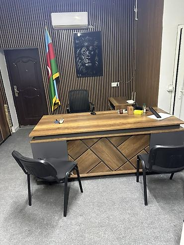 Direktor kabinet dəsti – müasir ofis üçün tam komplekt kreslolar qiymete daxil deyil!!! Tərkib: kreslolar daxil deyil - Geniş iş masası: taxta teksturalı (ceviz tonları), ön hissədə metalik zola...