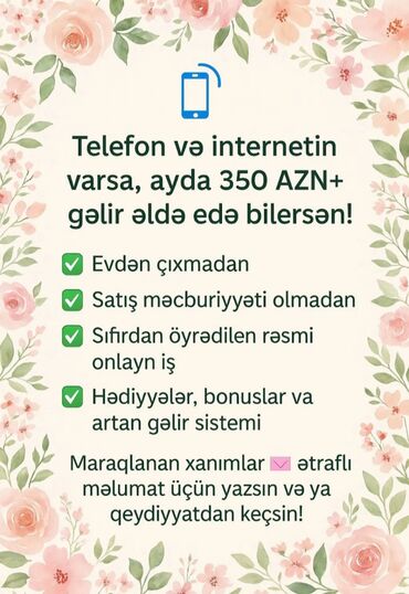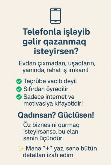 Onlayn gəlir imkanı – telefon və internetlə uzaqdan işləmə