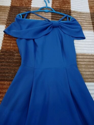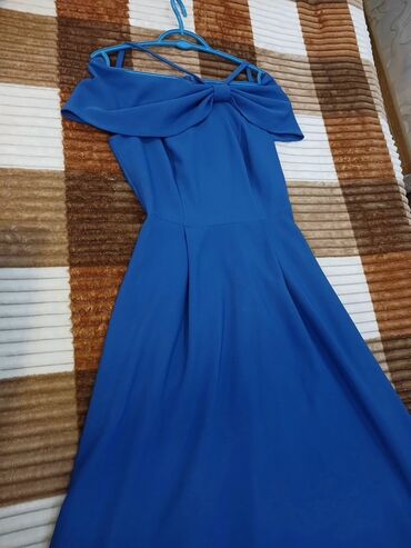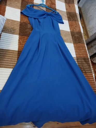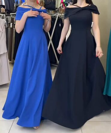 Zərif axşam/gecə geyimi – kral mavilisi rəngdə uzun don.