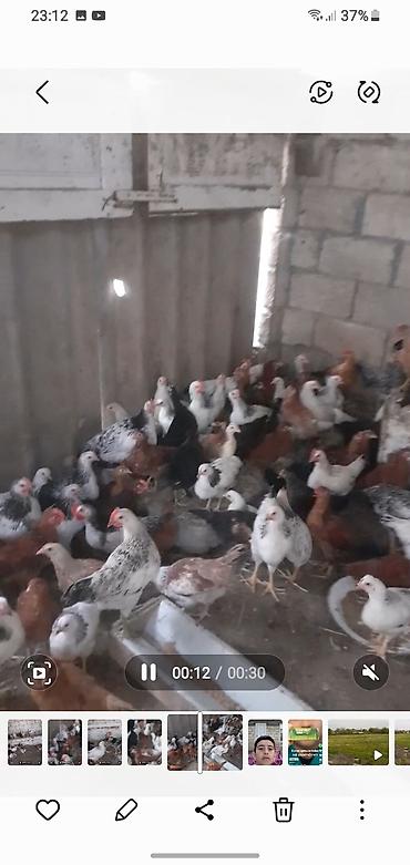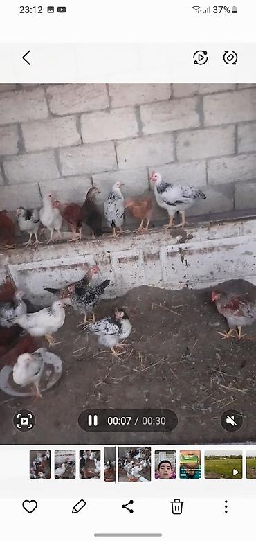 - Şəkillərdə müxtəlif rəng və naxışlarda yerli və kross cinsli cücələr görünür: ağ-qaralı, qırmızı-qonur, qara-ağ ləkəli və s.