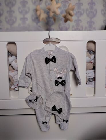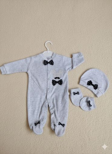 Yeni doğulan və ilk aylar üçün zərif və rahat gündəlik/şəkil çəkilişi üçün uyğun seçim. Unisex boz tonları və şirin qalstuk aksesuarları ilə dəst bir-birini tamamlayır.