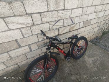 Motosiklet ilə barter mümkündür leş leş amma işdesin 4 km zad sürüb getirey mehleye m50 zad olar Şəhər və yüngül off-road üçün tək amortizatorlu dağ velosipedi - Çərçivə: qara-qırmızı rəngdə, göv...