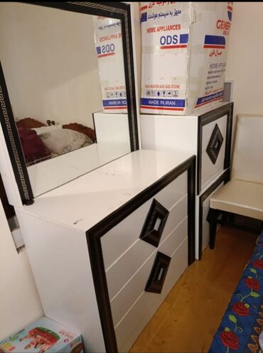 Satilir muasir ag rengde servant ishiq ile ve kamod. Tezedi chox az istifade olunmush ideal veziyyetdedir. Satilir birlikde. Isteyen muraciet ede biler.