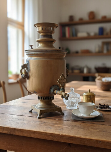 QəhvəyiSalam. 1870 ci ilin samovardır. Василия Степановича Баташев vərəsəliyindən qalan fabrik istehsalıdır. Tula şəhərində istehsal olub. Üzərində 10 cütdən çox möhür var. 10 litrlikdir. Samovarın dəmlik hissəsidə durur. Tam işlək vəziyyətdədir. Deşiyi, əziyi yoxdur. Antikvar əşyadır. Ciddi almaq niyyəti olan adamla qiymətdə razılaşmaq olar.