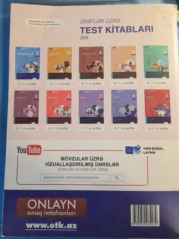 - Arxa tərəfdə siniflər üzrə digər fənn test kitabları haqqında məlumat yer alır (Azərbaycan dili 5–11-ci siniflər üçün seriyada).