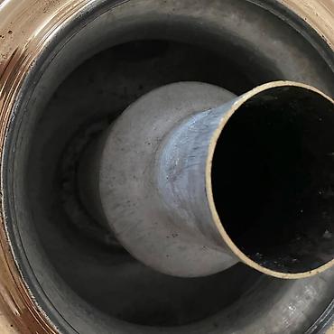 Məhsul: Odun/kömürlə işləyən şaquli su qızdırıcısı (samovar tipli “qazan”) Təsvir: - Material: qalın divarlı metal korpus, üst hissədə baca çıxışı və su dövriyyəsi üçün giriş-çıxış boruları. - Yan...