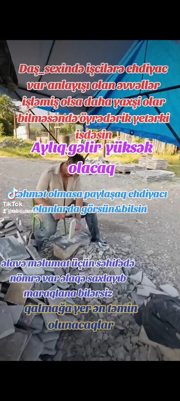 Rəsmi işədüzəltməTəbii daşların istehsalı sexinə işçi axtarışı