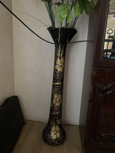 Bir ededi 20 azn Hündür döşəmə vazaları – 2 ədəd - Material: şüşə/keramika tipli parlaq qara korpus - Forma: ensiz, konusvari gövdə; aşağıda geniş, sabit baza; yuxarıda çiçək ləçəyi kimi açılan a...