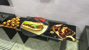 - Rəqəmsal çaplı vitrin/poster panelləri: sendviç, burger və toyuq-fri mövzulu yüksək keyfiyyətli şəkilli lövhələr. Menyu/vitrin dekoru, reklam və yönləndirmə üçün hazır panellər. Dairəvi və düzbucaqlı formalarda.