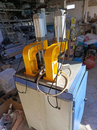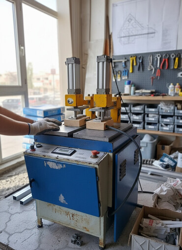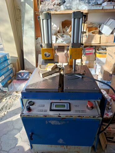 - İstehsal sahələri üçün pnevmatik iki stansiyalı qaynaq maşını: pəncərə/çərçivə PVC profillərinin 90° bucaqla birləşdirilməsi üçün.
