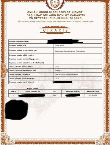 2500 sot, Kənd təsərrüfatı, Mülkiyyətçi, Kupça (Çıxarış)