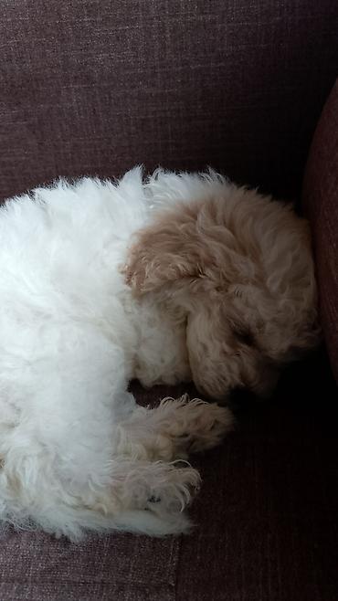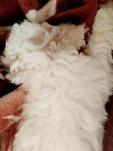 Sevimli, kiçik ölçülü, tüklü it balası - Cins: xırda ölçülü dekorativ (pudellə oxşar, qıvrım/tüklü) - Rəng: krem-açıq bej, qulaqlarda daha tünd çalar - Xüsusiyyətlər: yumşaq, sıx və hipoallerg...