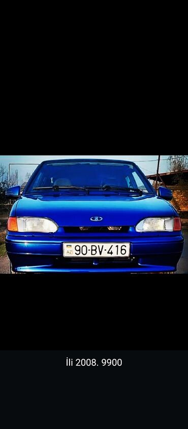 Lada sedan, mavi rəng, 4 qapı, arxa spoylerli. AZ 90-BV-416 nömrə nişanı görünür. 2008-ci il buraxılışı (şəkildə qeyd olunub “İli 2008”). Kuzovda orijinal Lada emblem və klassik faralar, ön-arka kruiz lip/obves elementləri. Dəmir disklər, standart qapaqlar, yan güzgülər kuzov rəngindədir. Salon qara toxumalı oturacaqlar ilə görünür, 5 nəfərlik. Arxa şüşədə isitmə rezistor xəttləri, arxa işıqlar klassik blok tipidir. Şəhərdaxili və gündəlik sürüş üçün praktik, sadə konstruksiyalı model. Şəkillərdə avtomobilin müxtəlif bucaqlardan görünüşü təqdim edilib. Şəkildə “9900” qeydi var.