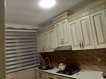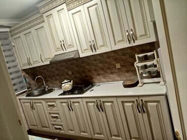 - Ayrı mətbəx: klassik üslubda bol şkaflı mebel dəsti, səthüstü qaz plitəsi, aspirator, dairəvi mətbəx çanağı, rolet pərdə, ədviyyat rəfi.